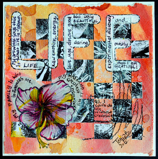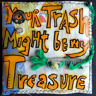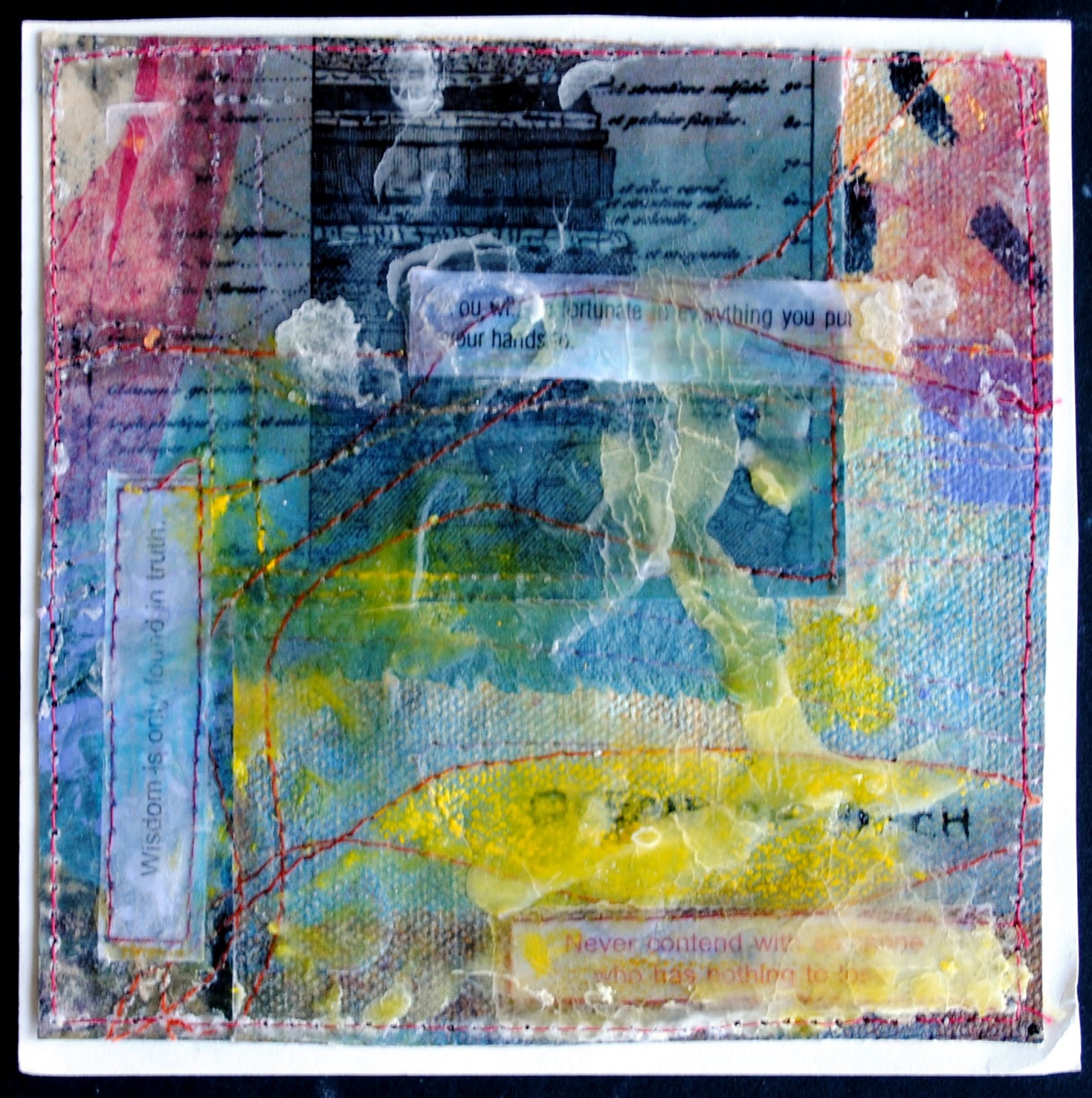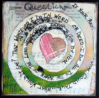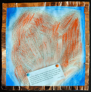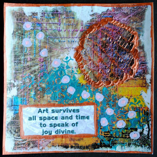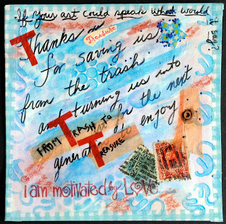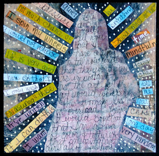 Submitting artists could chose 1, 2, or all 3 of the questions and respond to each by creating artwork in any medium in the form of a 5" x 5" square. They were asked to include words as a part of their artwork as well. There was a tremendous response to this call and I will be posting each submission every Sunday throughout the months of November and December.
