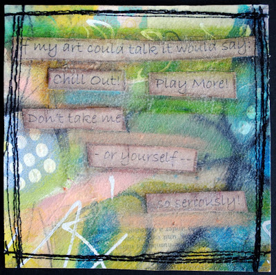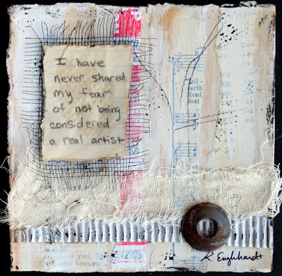 On several occasions I have been asked to share my pet peeves when it comes to art and the art community. My answer is always the same: exclusivity and snobbery. I get my knickers in a twist whenever I am confronted by or hear a story about people in the art community who maintain that art and creativity belong only to a select group. A trained artist who denies the validity of those who are self taught. A fine artist looking down on a mixed media artist. A mixed media artist who dismisses a scrapbooker. And don't even get me started on the debate between art and craft.