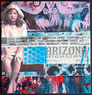 "I was in an abusive marriage for twenty-eight years, which ended six years ago. Not surprisingly, it was also six years ago that I discovered my love of mixed-media art and began creating. As each year goes by and I feel safer and happier, my artistic life grows and becomes more prolific."------------------------The next edition of 5x5 will be posted on Sunday, November 18th.