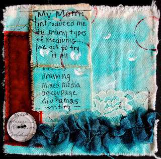 As part of my tenure on the Blog Team, beginning in December I will be creating and presenting a project using their products (along with many others) on my blog every Wednesday. It is my hope that I can introduce a host of new supplies, tools and techniques to my mixed media people that will serve to increase their arsenal. And it is equally my hope that perhaps a bit of my mixed media style will rub off on to the scrapbookers and card makers who can then add new techniques to their tool boxes as well.