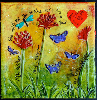 "I have a story to tell you and the words are as important to me as the art is. My art would whisper this woman is on overload. Beware it would point out that I'm a lover of color and texture and that smearing paint cures all of life's woes."------------------------