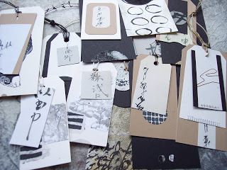 And a gaggle of handmade tags in a decorated envelope, all made by Lynne from original materials.