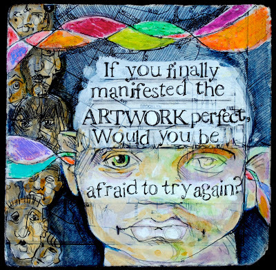"I do these page meditations everyday in the studio, sometimes instead of being random they seem to bring me important messages from the universe about my work. These 5x5 features a selection of those messages - so my 'secret' is that none of my work is really 'mine' - it floats up out of the cosmic soup/the collective unconscious (whatever you like to call it) and arrives through my hands. The obsessive attention to detail however is all mine."