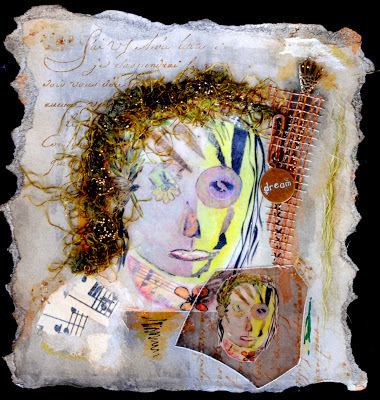 "My answer is represented in a small metal embellishment - dream. I continually think and sometimes actually dream about what I will create, how it will look and what it means to me. I placed a hand on this piece to signify that I am always reaching and stretching my artistic 'arm'... it reaches for the sky and there is not limit."