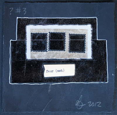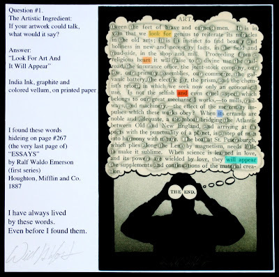 Submitting artists could chose 1, 2, or all 3 of the questions and respond to each by creating artwork in any medium in the form of a 5" x 5" square. They were asked to include words as a part of their artwork as well. There was a tremendous response to this call and I will be posting each submission every Sunday throughout the months of November and December.