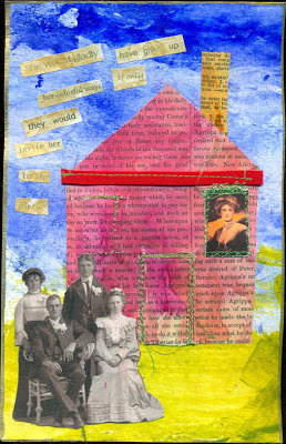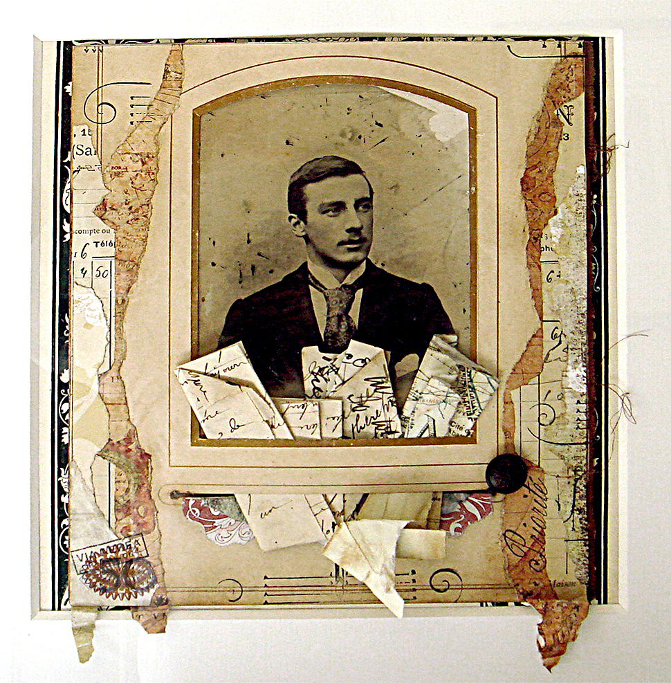 "This is a favourite collage piece using an old Victorian picture frame. I loved the photograph as it has a similarity of that of an old photograph I have of my father when he was 17. Even though the clothes and eras are different, the air of confidence is the same, and both men convey their optimism for the future."Deb Eck