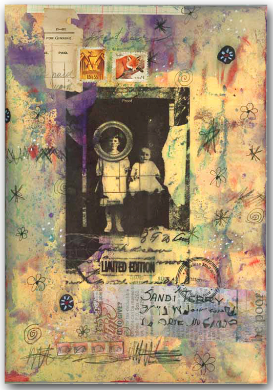 This is a page from my book with a composite photo from work in the book by (from top to bottom) Danny Gregory, Pam Carriker, and Orly Avineri.I have teamed up with CreateMixedMedia.com and North Light Books to sponsor a contest and I hope you decide to play along.