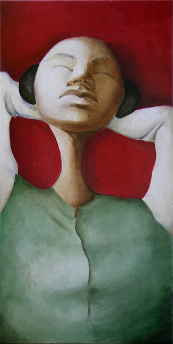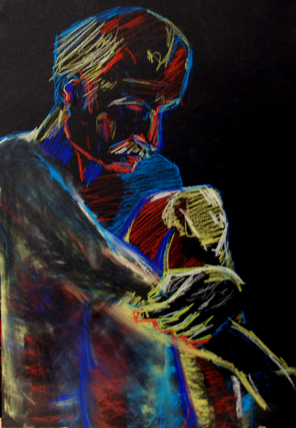 "In Life I am using colour to express volume but it was the pose that really moved me. Men are often portrayed as strong and somehow overbearing to women - which I find distressing. Here you can see the masculine strength but the pose expresses tenderness and vulnerability. I was hugely flattered that the model said that he recognized himself in the image, not just in the likeness of the physical reproduction of the seen object but in the mood too. That's what does it for me - capturing the person as well as what they look like."Marie Otero