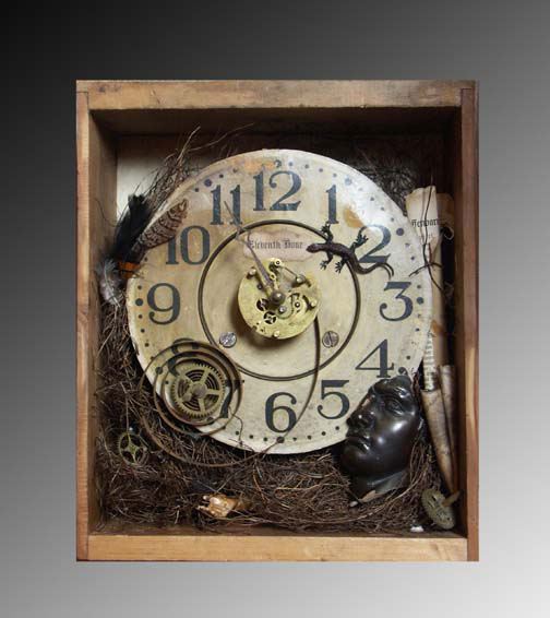"Eleventh Hour is a very powerful assemblage for me. Many religions, prognosticators and ancient civilizations dictate some sort of Armageddon or apocalypse in our near future. These predictions in my opinion are totally unfounded, however they have for centuries manipulated peoples' thoughts and judgements about their future causing them to experience untold anxieties, pain and fears."Jeanie Thorn