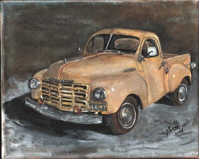 "This is a painting I did back in 2004. I painted this for a friend's birthday because he owned this truck. I think it was around the year 2001 that a friend asked me to paint something on a trunk for her baby son. I didn't know what to paint for a boy, since most of my work was on the feminine side. Her husband challenged me and I painted an old truck. This was the second truck I painted using acrylic."Lani Gerity