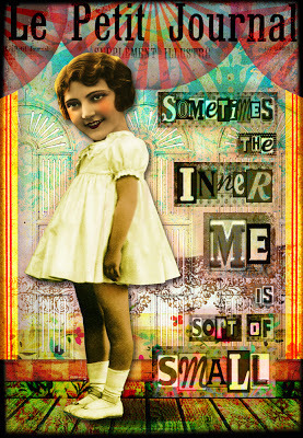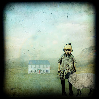 "Here's an image that I concocted with an old photo, coloring it and then adding it to this background, adding the house and the sheep as well. Then I added a 'Through the Viewfinder' layer for texture and depth. I also used some 'Flypaper Textures' (really super). When I look at this picture, for some reason I feel quite happy and hopeful, like we are encouraging each other to do more, create more, be more, take more risks... We are encouraging each other to be awake and alive. I love that!"Diana Trout