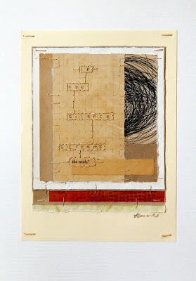 "Truth: One of my collages for the ICE exchange tops the list as my favourite because of the way I felt when I completed it. It went beyond being pleasing to my eye (although it is that) and spoke to me in a more deep and meaningful way. The writing says 'In the silence screams the truth' which I feel is slightly provocative. It stirs up emotions and asks questions of the viewer. I feel it really expressed what my Fragile series was about. The collage is now part of the permanent ICE collection as I couldn't bring myself to either swap or sell it."Tracie Lyn Huskamp
