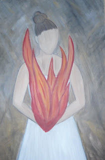 "Fire. I did this with a gathering of women. I had been encouraged to paint in front of these women but was too scared. But this one time I finally got the courage to do it and this is what came forth."Theresa Plas
