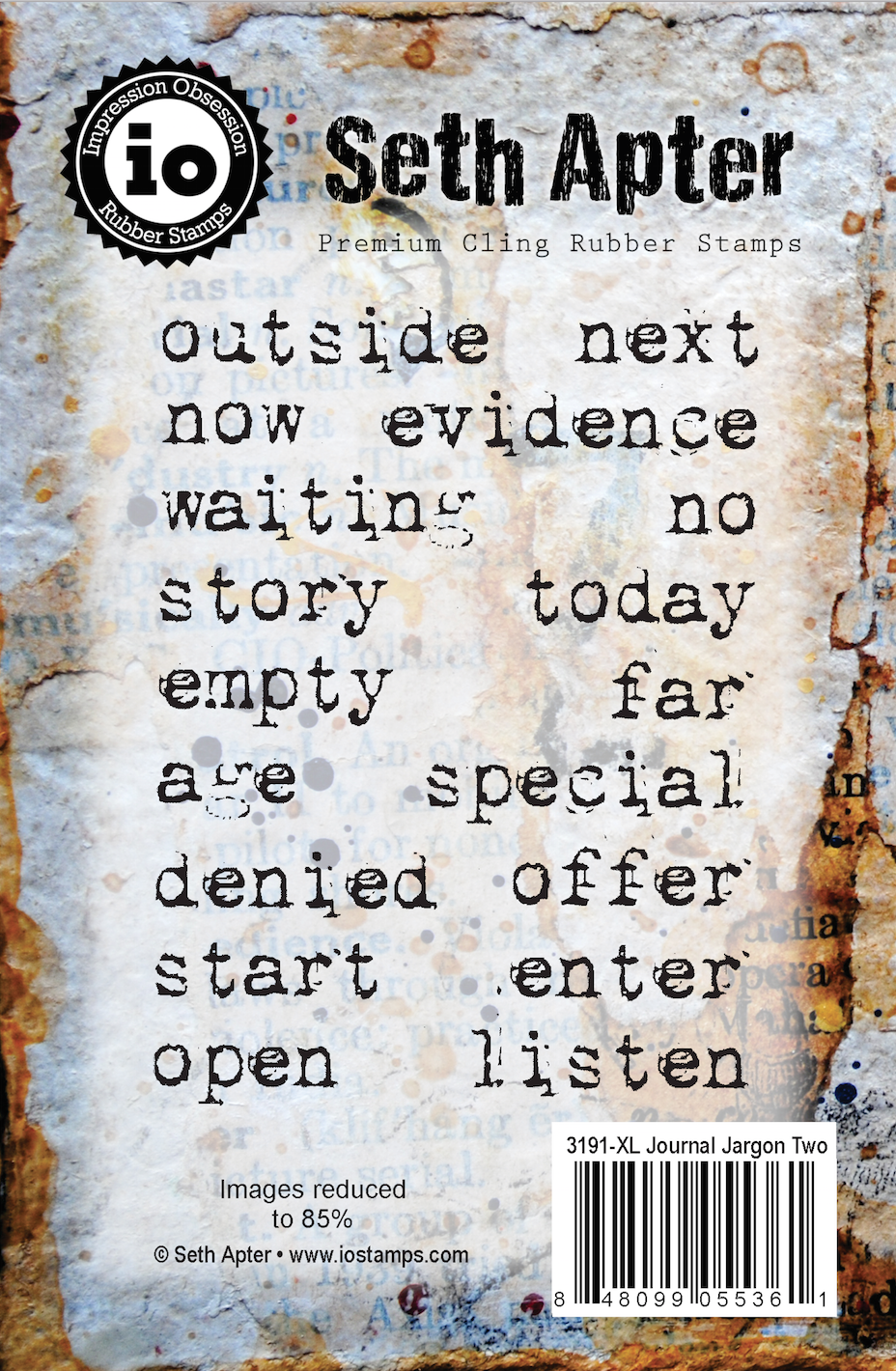 This set of 18 words, created in a vintage-typewritten font, are perfect for art journaling, mixed media, card making, scrapbooking and more. They are deeply-etched, cling-backed red rubber and all the words are pre-cut so you can open the package and stamp immediately. Here are sets one and two.