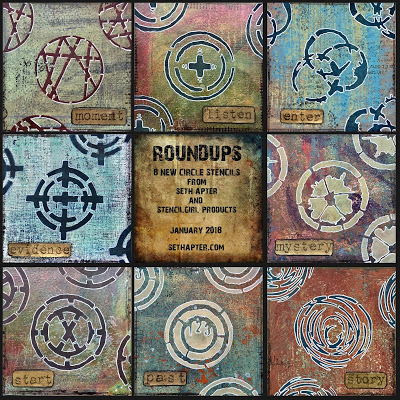 So very excited to share with you my newest release with StencilGirl Products. This collection, entitled Roundups, includes 8 new 4x4 inch stencils celebrating the circle. The designs were inspired by the symbolism of a circle and the concept of all things being united and inclusive.