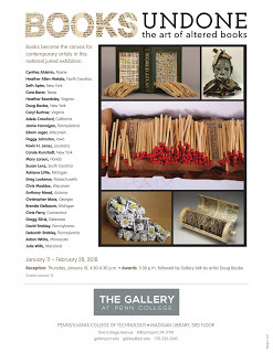 This show, being held at The Gallery at Penn Collage in Williamsport, Pennsylvania, opens on January 11 and runs through February 28. 58 book works from 27 artists will be on exhibit. There is an opening reception on Thursday, January 18 from 4:30-6:30. I would love for you to stop by at some point during the exhibition but if you are unable to, you can see the full exhibition catalog here.