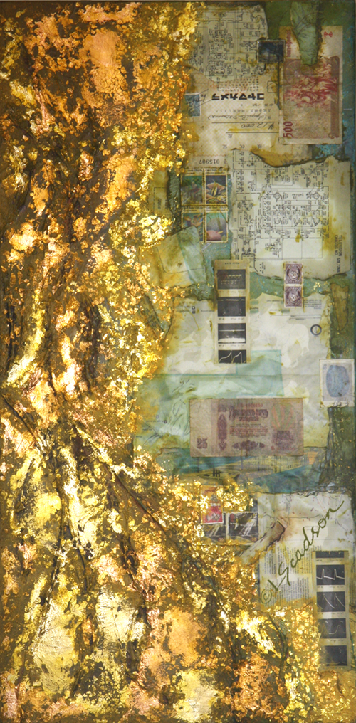 "This painted collage marks a huge leap of faith in practice - life and art. I took a Nick Bantock workshop that changed my life. Nick knew how to push, encourage and challenge me to get out of my own way and let the inner brilliance out."Jessica Walthall