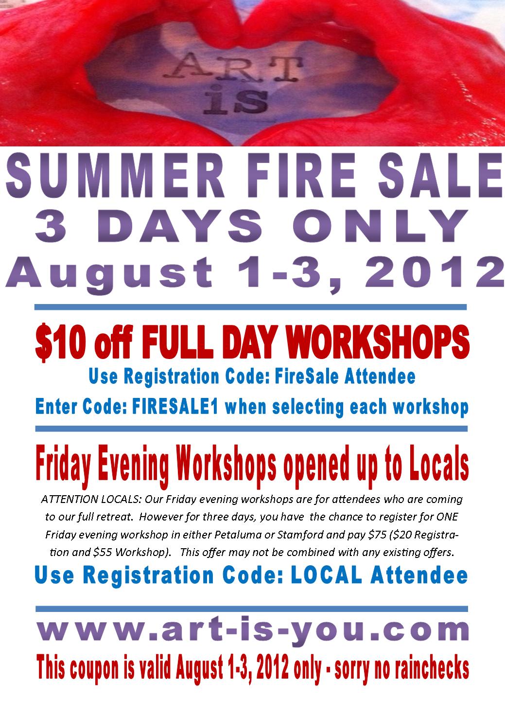 If you have been thinking about attending the retreat, now is the time. There is a fire sale ending today, August 3rd, where new registrations get $10 off full day workshops.