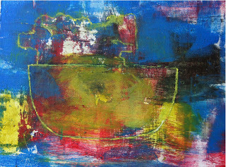 "This is a mixed media piece on wood of The Owl and the Pussycat. Layers of vibrant color laid down with scraping back in places gives it its distressed quality which I love."------------------------------------------