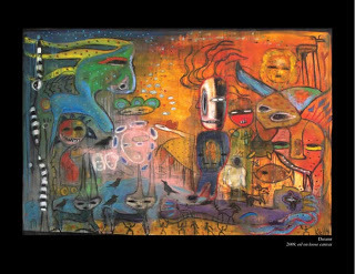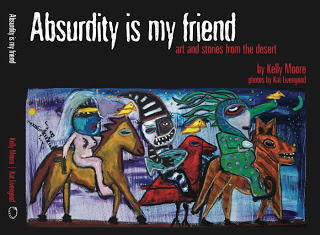 There is a new book in town...Absurdity is my Friend: art and stories from the desert...from the one and only Kelly Moore. Kelly is a unique talent and a generous soul. I had the pleasure of meeting him back in 2008 at The Shed on the Tesuque Reservation in New Mexico. You can read all about my visit in this earlier post.