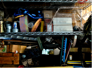 "These are shelves filled with objects that I can make assemblages with. I know it looks like a moge poge, but it works!"Lisa Sarsfield