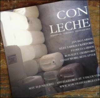 Con Leche, an exhibition of work from four members of the very talented Larsen/Crawford family, is currently running through June 4th at Le Marche St George in Vancouver, BC. I was also included in this show as a guest artist. Con Leche is Spanish for With Milk, a nod both to the white color palette of the exhibition as well as to Mexico, the home of artist Patricia Larsen. This show was originally suppose to open on the night of my book signing, but a scheduling conflict for the exhibition space meant that the show opened one week later, on May 10th. Although I do not have pictures from the exhibition, a beautiful post from Le Marche St George captures the opening perfectly.