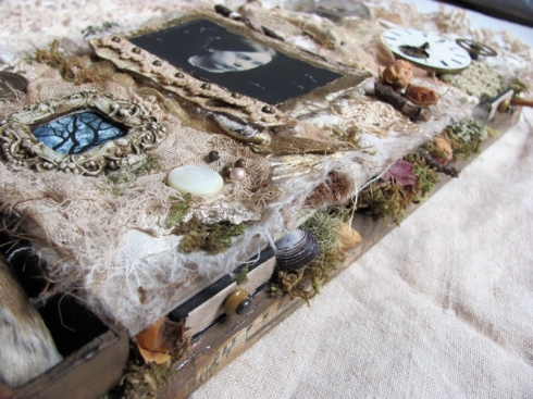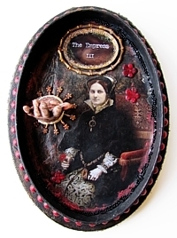 ------------------------------------I have been trying to remember when I first 'met' Alicia. It may have been back in early 2009 when she joined my Disintegration Collaboration. In any case, her art and blog have always fascinated me. She is a mixed media and assemblage artist who has a definite 'quirky' style. To quote her own blog, she has a "penchant for anatomy, bird nests, taxidermy, miscellaneous doll parts and 'creepy things'." In attempting to include many different approaches and styles to art in my book, I just knew I had to include Alicia.