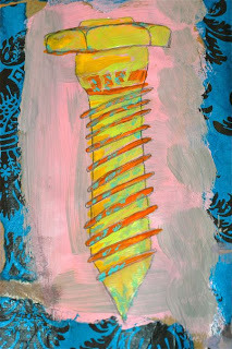 Gary creates amazing textures and layers in all his artwork, no matter the medium he uses. His work is vibrant and grungy, with just enough 'quirk' to make it really interesting. I mean, how many people do you know that have held a sardine can shrine challenge?!? Thanks, btw, for letting me be the official judge on that one. I have not met Gary but one day, if he heads to NYC or I head to Australia, we just may meet. And if we do, I would like nothing more than to spend a day in the studio collaborating on some art.