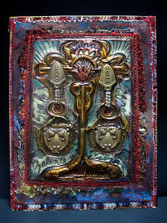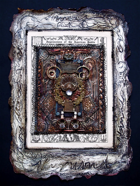 One of the marks of being an artist is creating a body of work that is truly unique and recognizable as the artist's own. To me, Karen Cole fits this description to a tee. She has created an incredible series of artworks using a fascinating technique that involves copper sheeting, found objects, stitching and paint. I have seen her work in person and its intricacy, detail, and dimension is truly extraordinary. Somehow her pieces take on a sense of history and feel almost like relics or artifacts from another age.