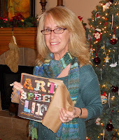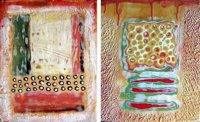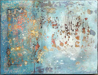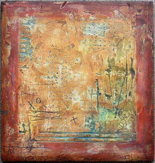 But Judy's blog and her art are about much more than just her journal pages. I am utterly enthralled with her abstract plaster and encaustic paintings. And I am so lucky to have one in my studio. Her book Plaster Studio: Mixed-Media Techniques for Painting, Casting and Carving