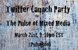 Join me on Wednesday March 21st when I will be celebrating the release of my book, The Pulse of Mixed Media. I am holding a Twitter Launch Party from 9-10pm EST, where you can talk in real time to many of the contributing artists from the book. Everybody is welcome, but you need to have a Twitter account to join in. For this party, all tweets need to include the hashtag #PulseBook.