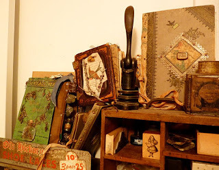 She heads back to her studio where she hoards her vintage finds and creates from her heart, unique found object assemblages.