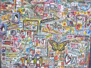 , which changed the face of mixed media art as we know it. She is creative, kind, generous, and innovative and has been a source of inspiration to me long before I began blogging. And she has been a consistent supporter of me in my career as an artist.I have met Lynne twice, having had the luck of taking two different workshops with her in 2007 and 2009. She is a wonderful instructor, who found the good in every student and in each piece of art that was created. But I have to say that the highlight of the workshops was seeing her own art in person. As sensational and spectacular as it is online, it is even better "live." For the second workshop, Lynne brought in her white journal from True Colors. Seeing that in person at that time in my development as an artist was priceless. Thanks for that Lynne!