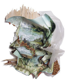 ---------------------------------------------Cathie Parreco chose Gregory Euclide. "I admire the many layers in his work and would like to know what adhesives and materials in uses. Does he start with a plan or does he just 'wing it.' He has a large library of You Tube videos documenting his work. It adds value for his audience and is a fine example of how an artist can use the web to market their work."