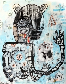 A: i'm not so interested in classes as i am very content with my path passion and creations. i would love to collaborate and create with the person who encouraged me to paint in the first place - chris giordani. his process and ideals are very similar in his work, his ethic and ideas, tons of emotion and expression in his work. when i first started painting we would collaborate or work in the same space 3x a week for a good year. the energy was just tops. it's not that i feel there's nothing to learn i just feel that inward is the direction of truth and personal growth. this is what i teach in my workshops and this is what i seek and at this point i don't really want to be distracted from my current path. as i'm chasing it like a fever everyday.