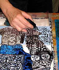 ----------------------------------------------Judy Shea said "Right now, Anne Bagby. I am engrossed in her approach to collage by creating one of a kind papers with her own printing and color mixing methods. As you examine her finished pieces, they take you on a ride to examine all the layers she's put into them. They seem complicated, but watching her create them (on her DVDs) is compelling and straightforward at the same time. Amazing!