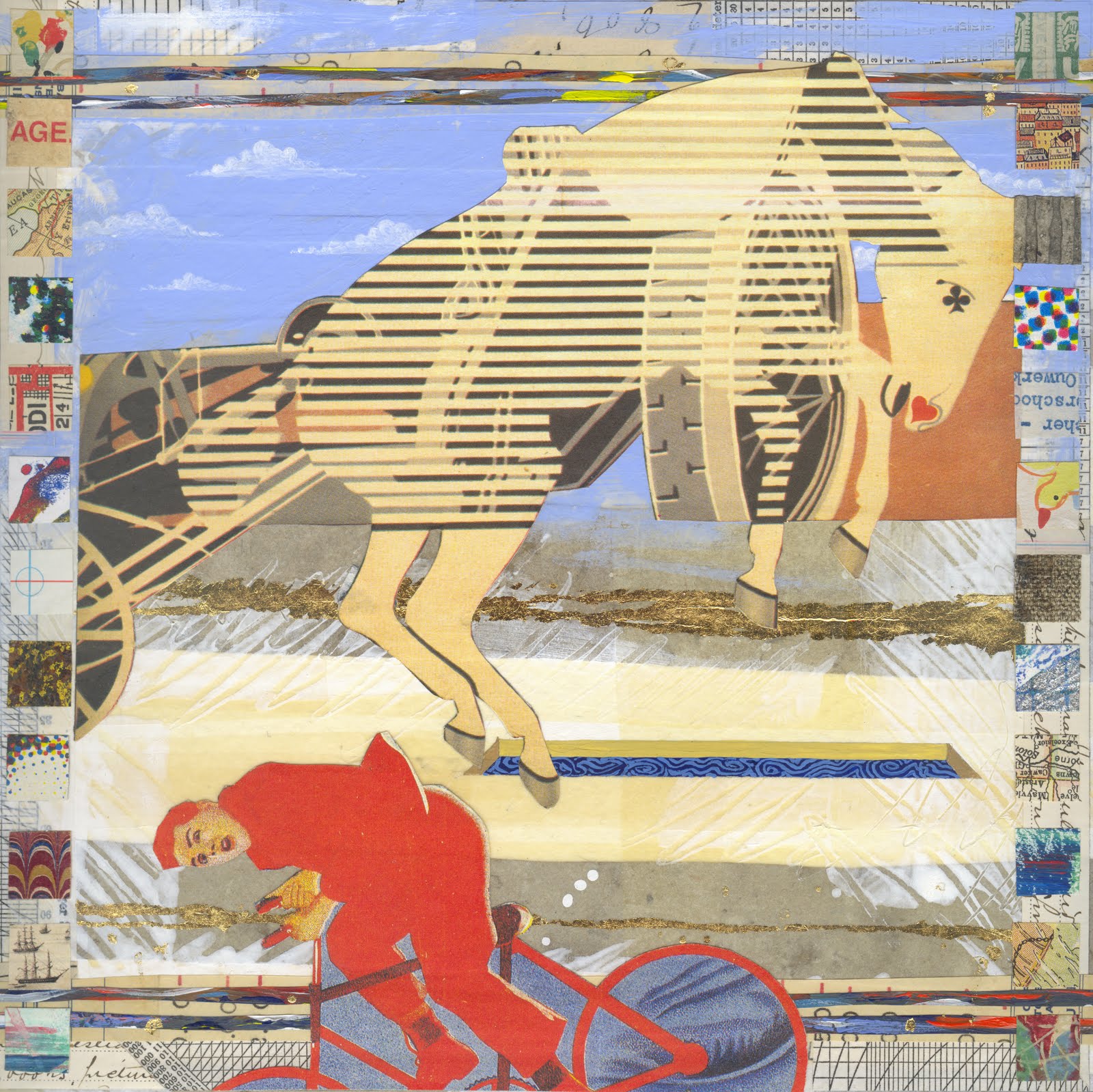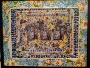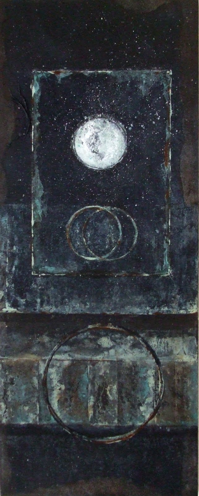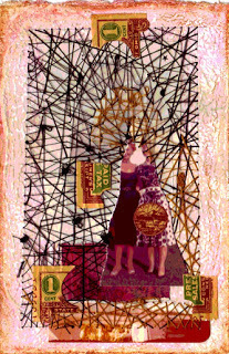 I am not sure that the artwork which I produce can be categorized as being directly connected to a particular artistic style. Most of my artwork falls into one of two distinct types: mixed media pieces on paper or museum board and wooden shadow boxes (which I call "scrapboxes"). I enjoy materials and processes that create an unusual juxtaposition of textures, patterns, colors and ideas, which sometimes lead to surprising visual connections. I like to think of my artwork as brief glimpses into the everyday details of a reality that may exist in another time or place. (Fall into Place).