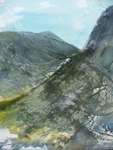 How would I describe my artistic style? As I don't call myself and artist and have no art training except just getting on and doing it, this is a difficult question. I'm a musician and writer and spend most of my time with those. The time I get to spend on artwork is very precious and has to make the most of every moment available. So, it tends to be spontaneous and gestural, usually done in one sitting with the weather dictating if a piece gets finished there or not. I think this piece, inspired by a landscape near Wastwater in the Lake District, might show some of that.