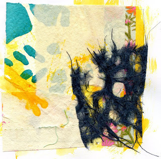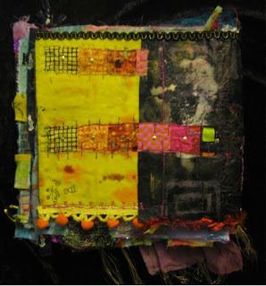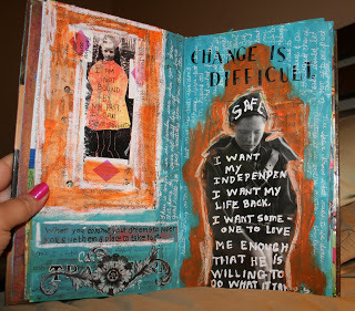 I am very much a visual journalist...the words are as important to me as the art. I have a great need to tell my story as it were. My pages jump with color and texture and there are layers upon layers. Paint covers up paper, and then I add more paper, and then more paint. Bits and pieces peek through, but even if they're covered up, each bit lends an energy that would have be lost if I'd only put down a single coat or two. I love the end product, but I love the process even more.