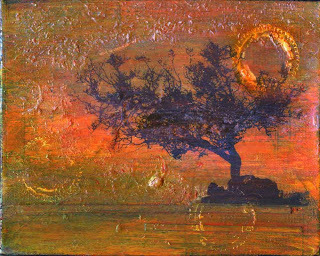 I love to incorporate my photos in my art. When I painted, it was landscapes from my photos. My mixed media features my photography. I also love color and graphic elements. I would describe my style as influenced by my observations of the natural world, using colors and imagery that resonate and reflect the mystery of nature. (Sunset)--------------------------------------------------