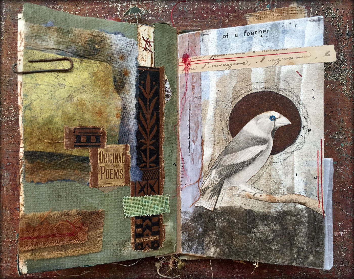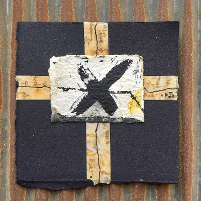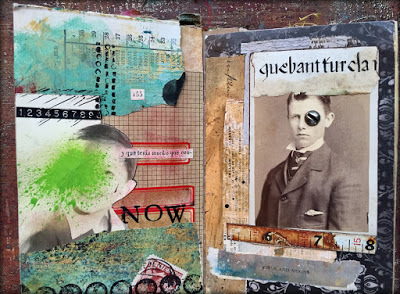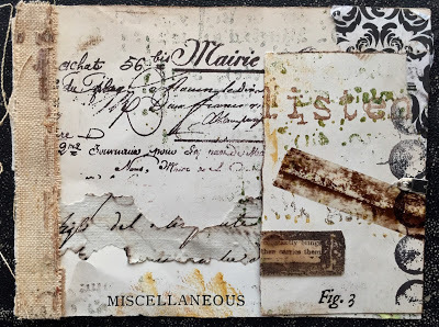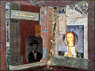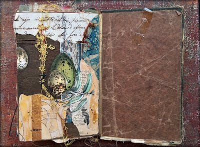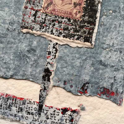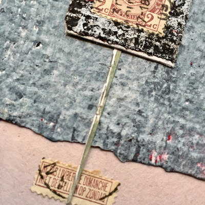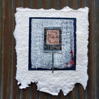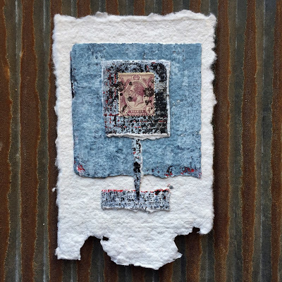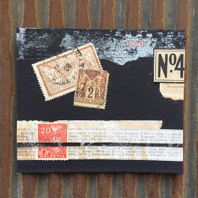 Today I am posting the first 11 pieces. I will be selling each "card" in the deck individually for $35 (including postage if you are in the US/plus postage if you are International). Most measure 4 x 4 inches but they range from 3.5 x 3.25 to 8 x 2 inches. Many are built on paper while some are layered on vintage book cover slices.