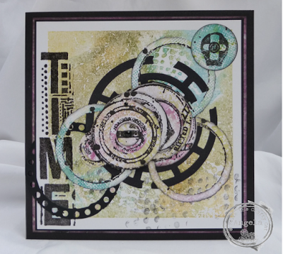 (Impression Obsession Universe Stamp, Rotators Stamp Set, Extra Time Stamp; Spellbinders Ring Around Die Set, Broken Maze Die)