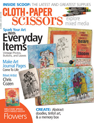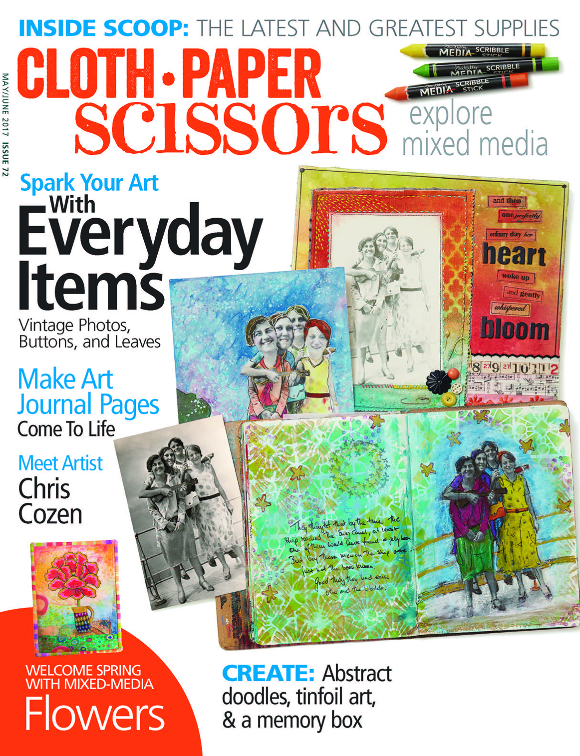 The May/June issue of Cloth Paper Scissors is all about making the ordinary extraordinary. Some of the articles include how to cast molds from everyday objects right onto art journal pages, ways to create digital printing on skeleton leaves, and how to make gorgeous memory boxes from fabric and paper scraps. This issue will truly get your creative gears in motion.-----------------------------------------