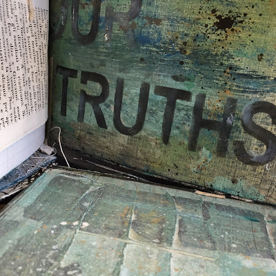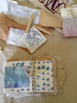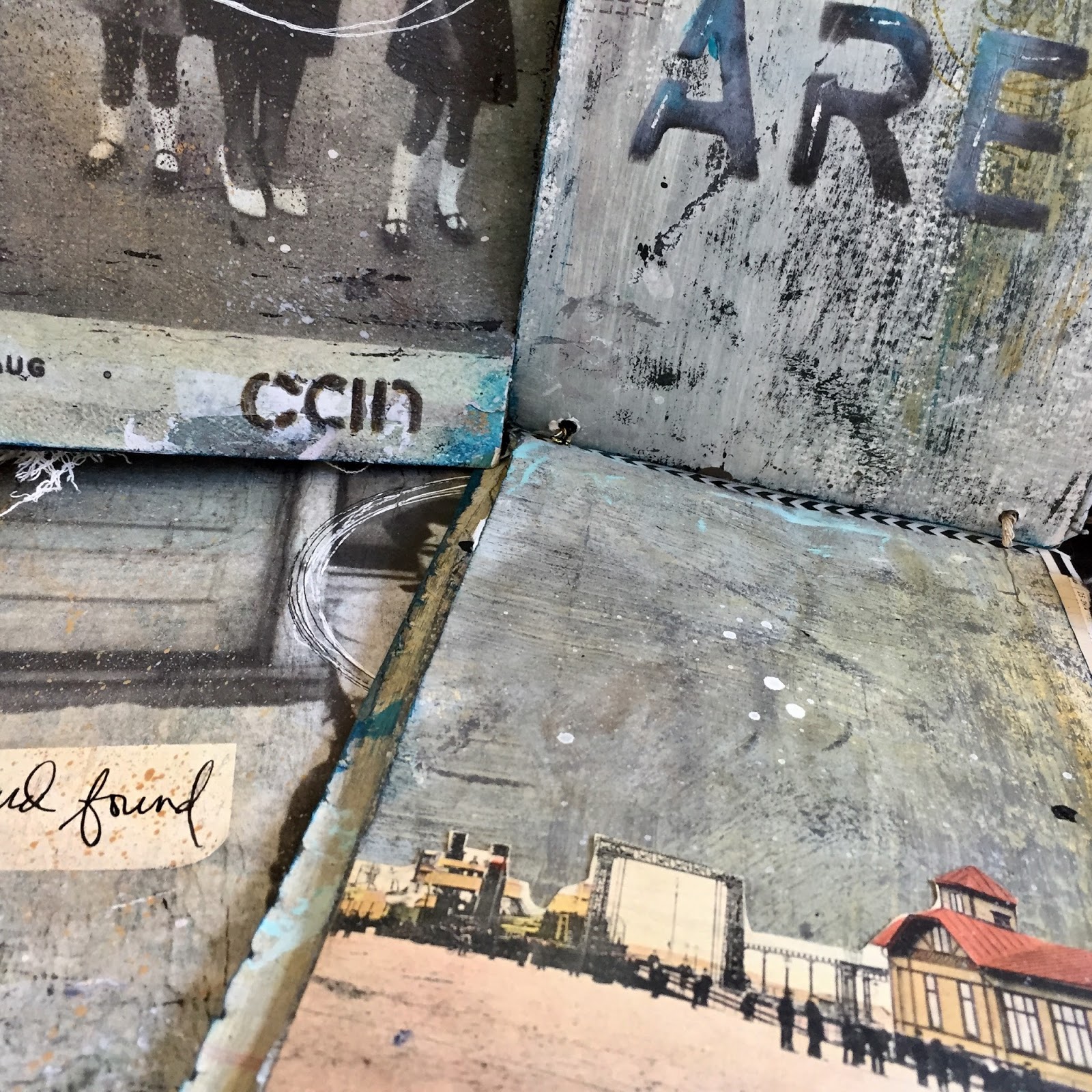In early April, Glenda attended a workshop I was teaching at the mixed media retreat Art is You in Santa Rosa, California. The class, a new one for me, was called Table of Contents. The brief was to create a series of bound booklets, each of which reflected a chapter of your life and all of which were then wrapped up inside book covers.