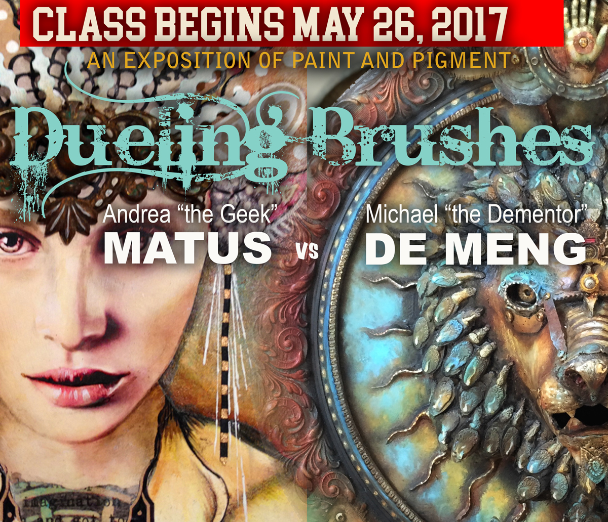 Dueling BrushesAndrea "the Geek" Matus vs Michael "the Dementor" deMengAndrea and Michael explore the ins and outs and in-betweens of using acrylic paint in this online workshop. From color theory, the science of paint, the history of pigment to the practical uses in art. Andrea covers 2D and Michael covers 3D. Sounds goods 2ME.-----------------------------------------