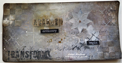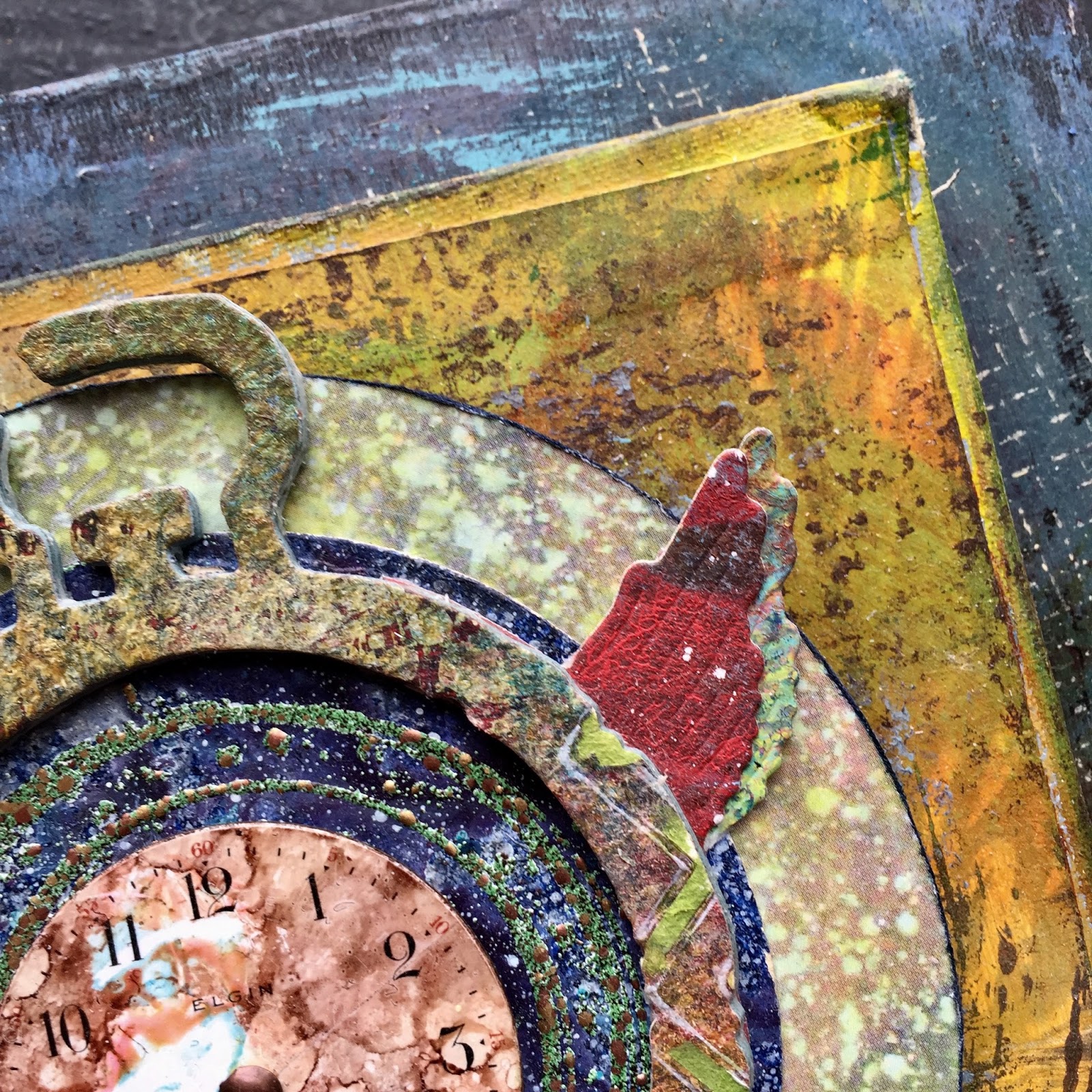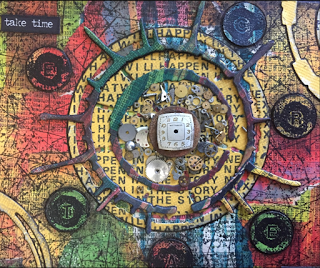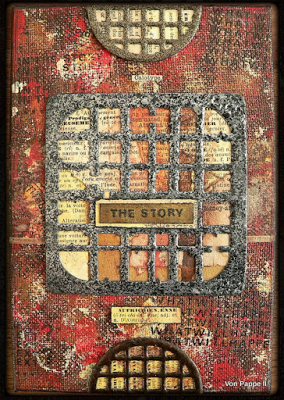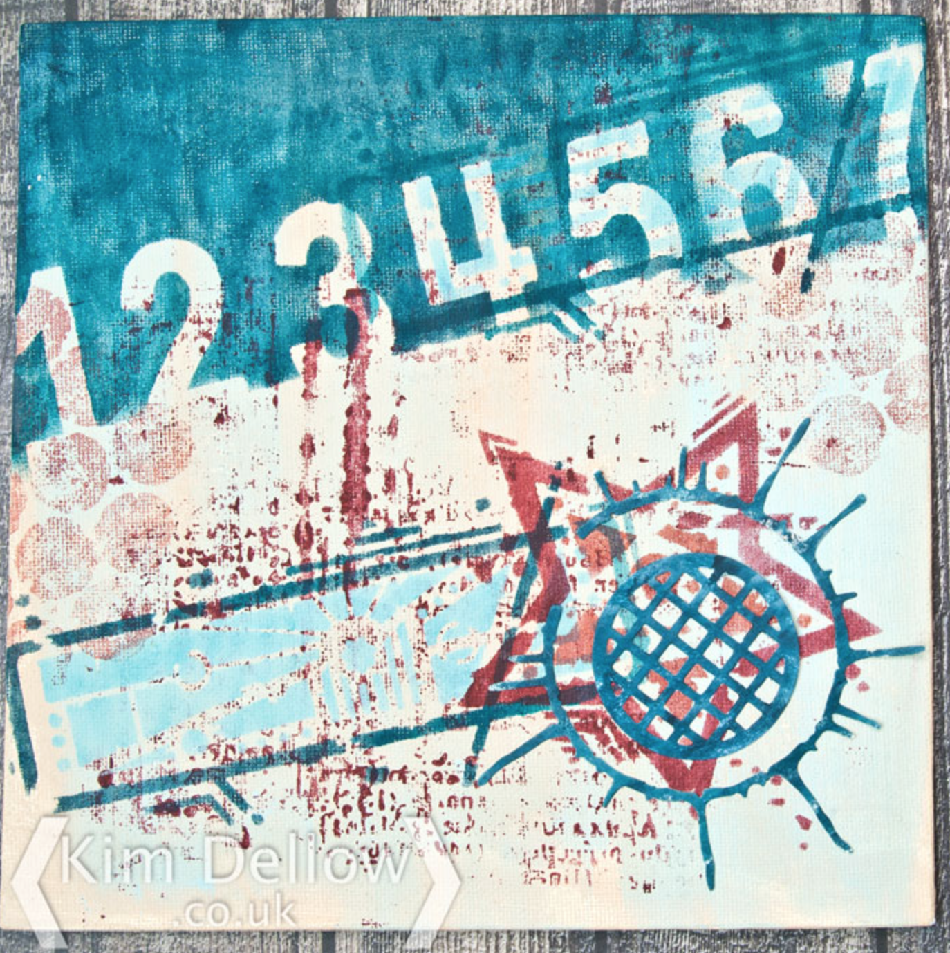 Kim shares a video tutorial of her layered artwork using a number of my products (PaperArtsy Paint Set 1, Eclectica 01 Stamp Set; StencilGirl Make it Count Stencil, Techno Star Stencil, Urban Outsiders Stencil, Urban Bar Stencil; Spellbinders French Text Stamp; Splatter Proof Die Set, Pocket Watch Die Set, Gridiron Embossing Folder)