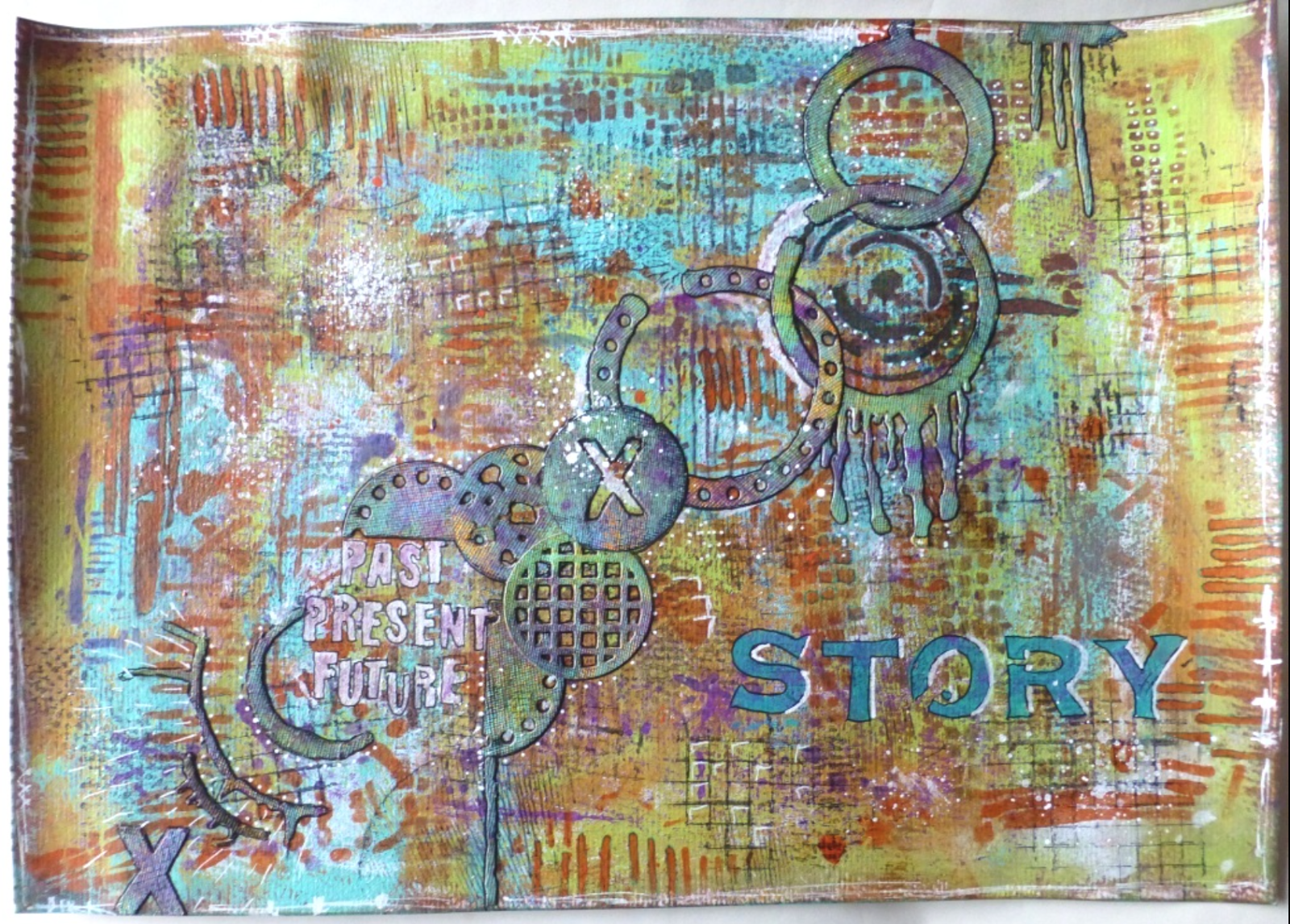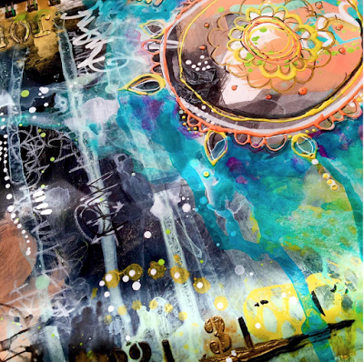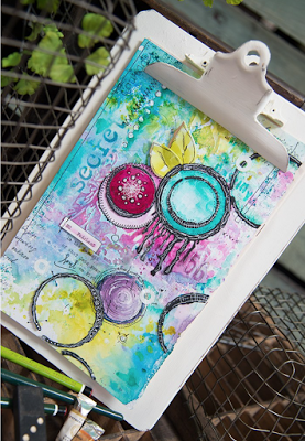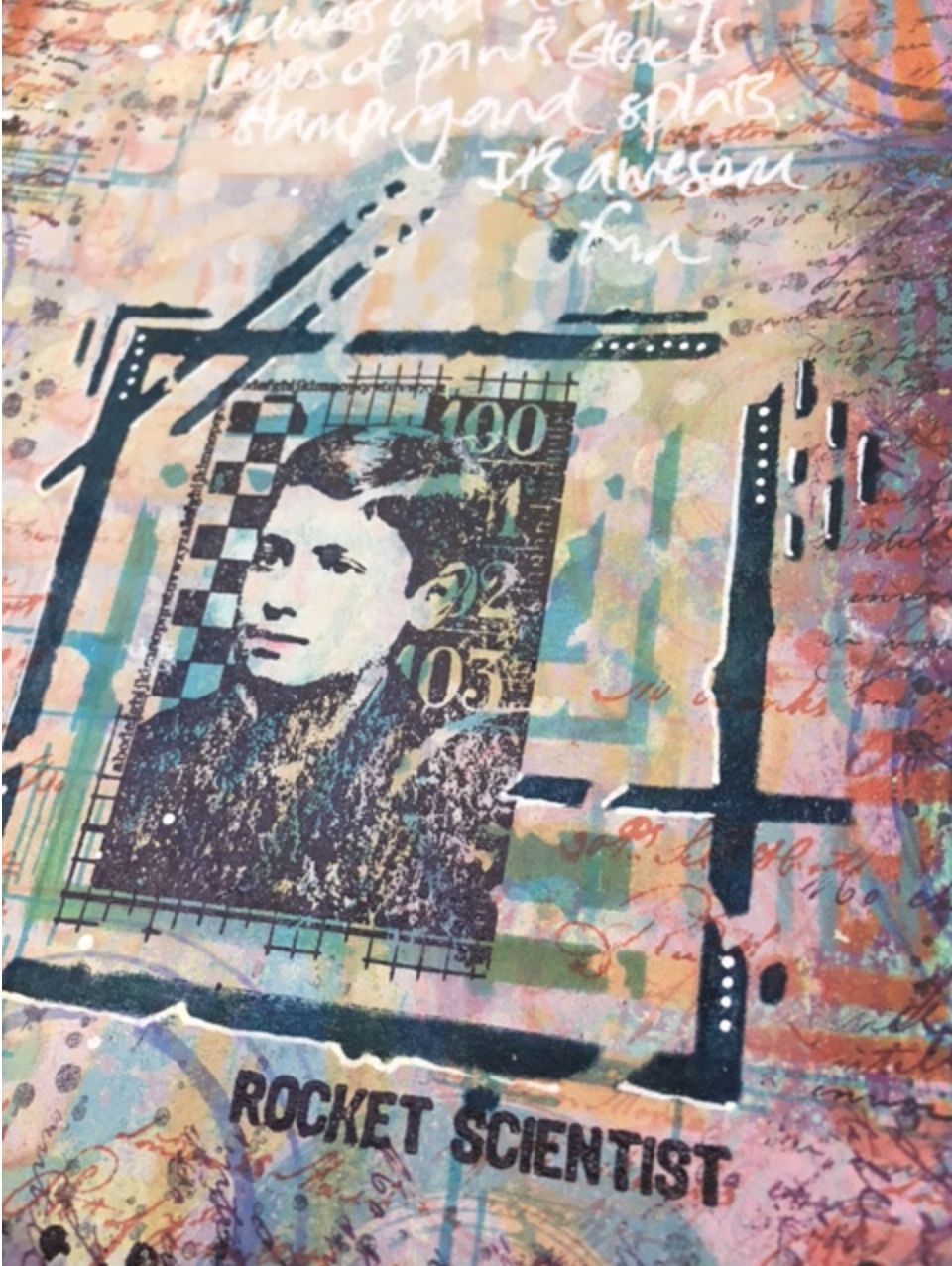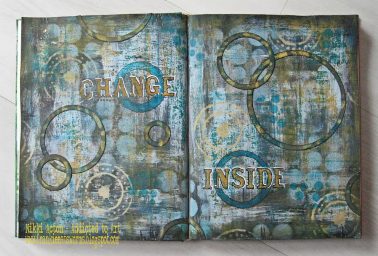 (PaperArtsy Limited Edition Paint Set, Eclectica 01 stamps, Eclectica 02 stamps; StencilGirl Urban Insiders Circle Stencil)Amanda Southern