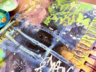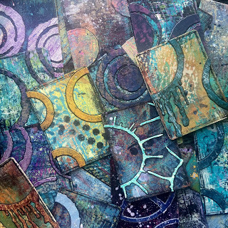 (PaperArtsy Limited Edition Paint Set, Eclectica 01 stamps, Eclectica 02 stamps; StencilGirl Urban Insiders Circle Stencil)
