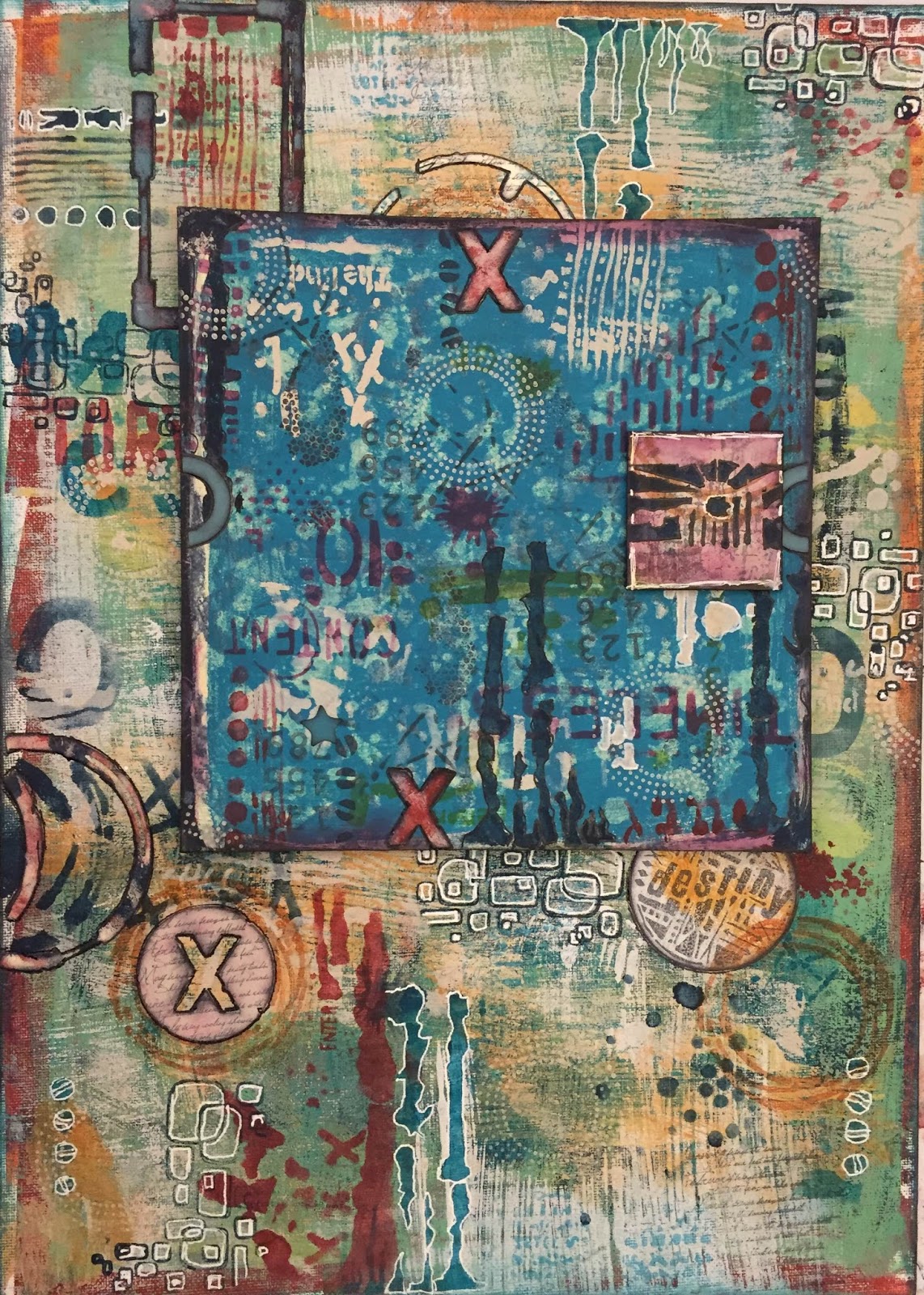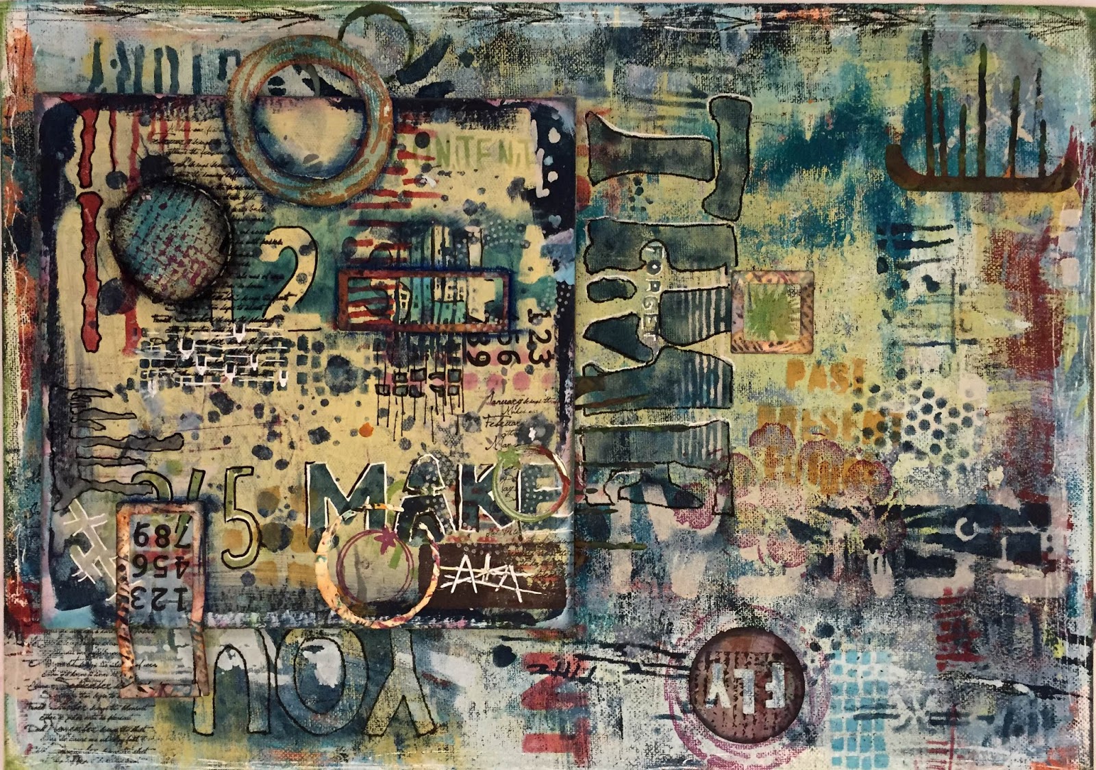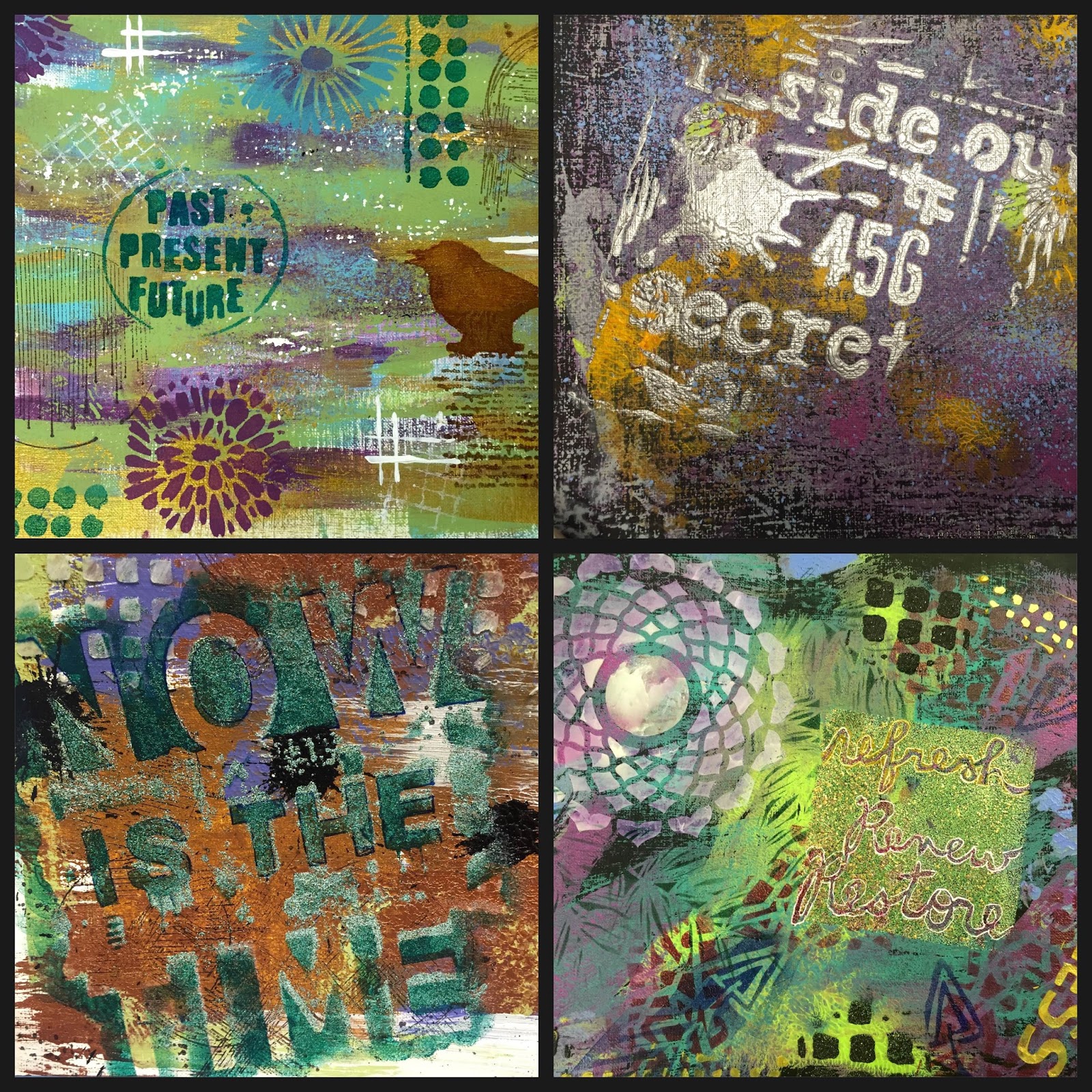 This workshop is all about making layers, making a mess, creating random with abandon, and learning a ton of mixed media painting techniques.