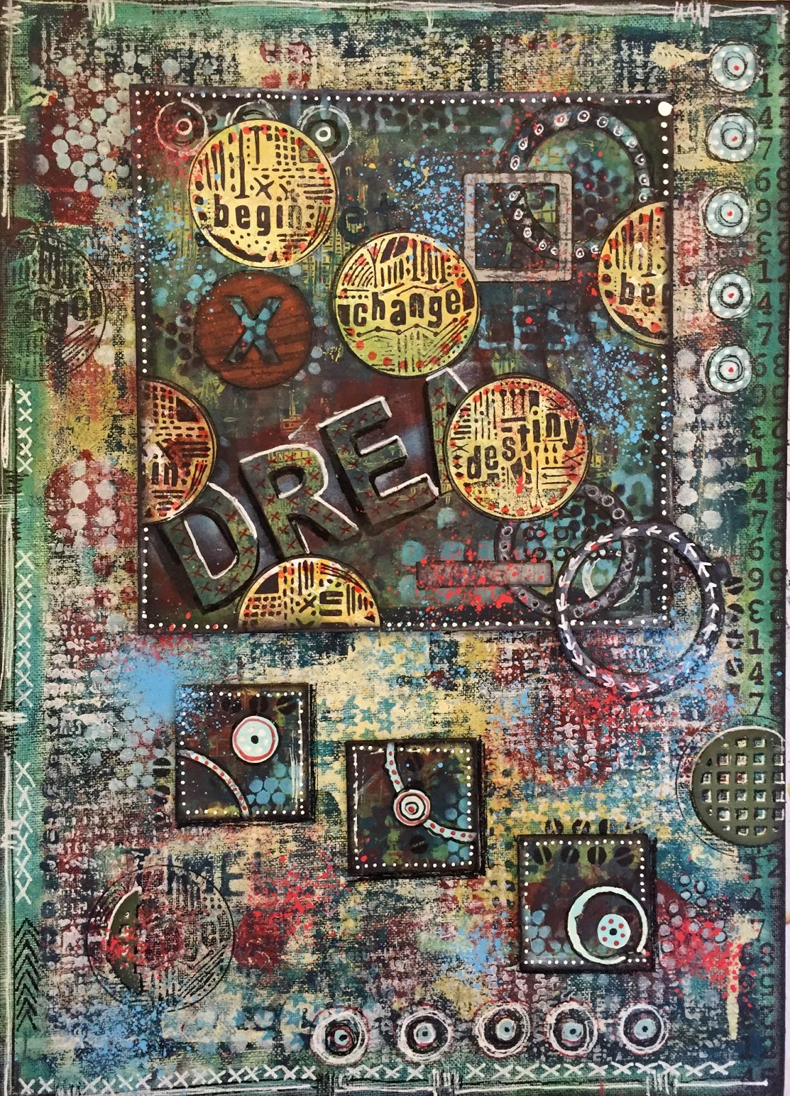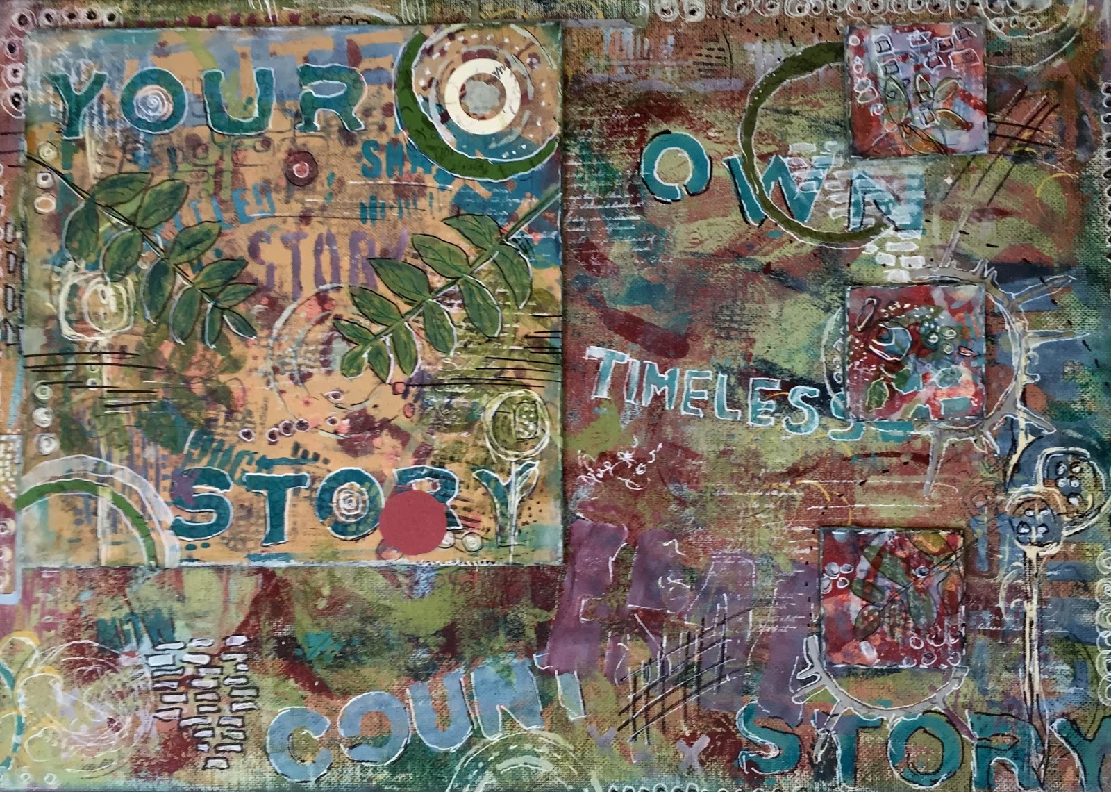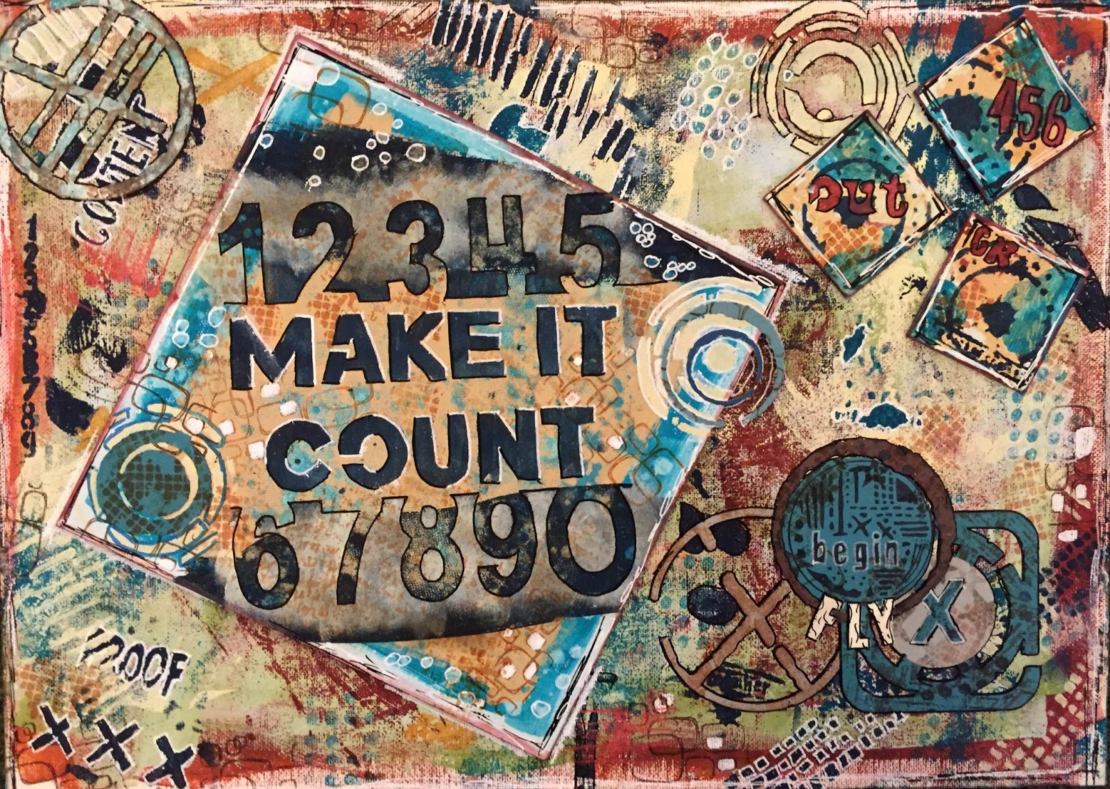 This workshop is all about making layers, making a mess, creating random with abandon, and learning a ton of mixed media painting techniques.